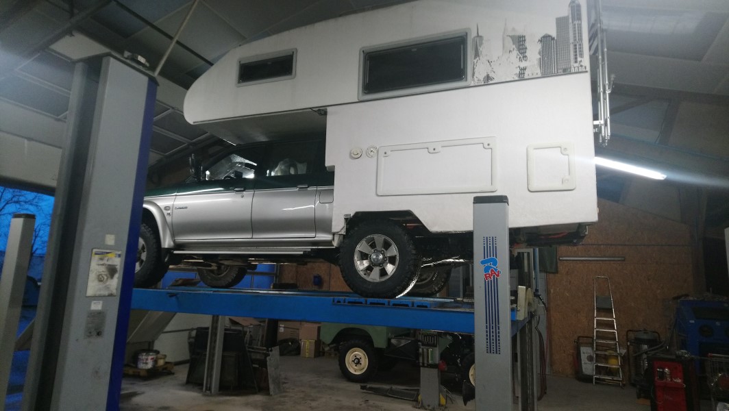 Comme nous sommes novices en terme de mécanique et que le lieu de stockage (un box sans eau ni électricité) n'est pas propice à des travaux importants, nous nous mettons en quête d'un mécanicien. Tout d'abord en proximité de notre lieu de stockage, mais ce sera un échec (« je ne connais pas ce genre de véhicule », « je n'ai jamais fait ça », « il faut attendre que ça casse, on ne remplace pas avant »), bref, on ne trouve pas un endroit de confiance. Nous cherchons sur internet s'il y a aux alentours un mécanicien un peu plus spécialisé dans ce domaine, et nous trouvons notre bonheur chez MTT Auto, ou David et son équipe nous écoutent et savent nous guider dans nos projets. Quand on vous accueille après un coup d'oeil sur le parking par un « c'est un L200 que vous avez là ? 2006 ? et la cellule, une clémenson, un peu lourd non ? », on sait qu'on est au bon endroit...