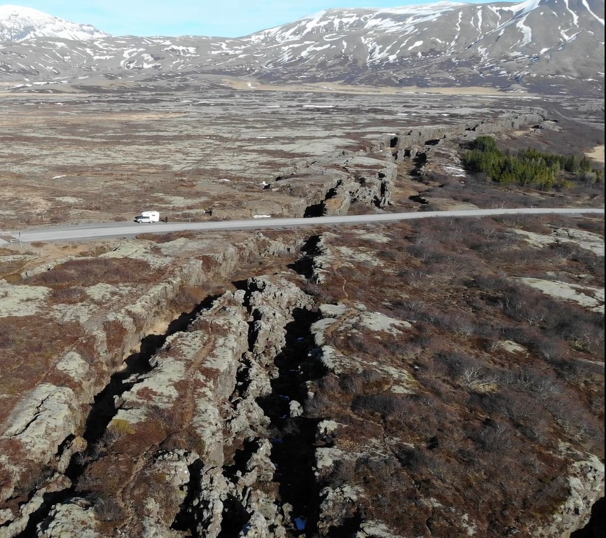 Nous rejoignons le parc de Thingvellir, où se trouve un immense lac bordé de failles impressionnantes. C'est à cet endroit que se tenait le premier parlement Islandais. Nous nous engouffrons dans une des failles, des frissons plein les bras, on se sent tout petits !
