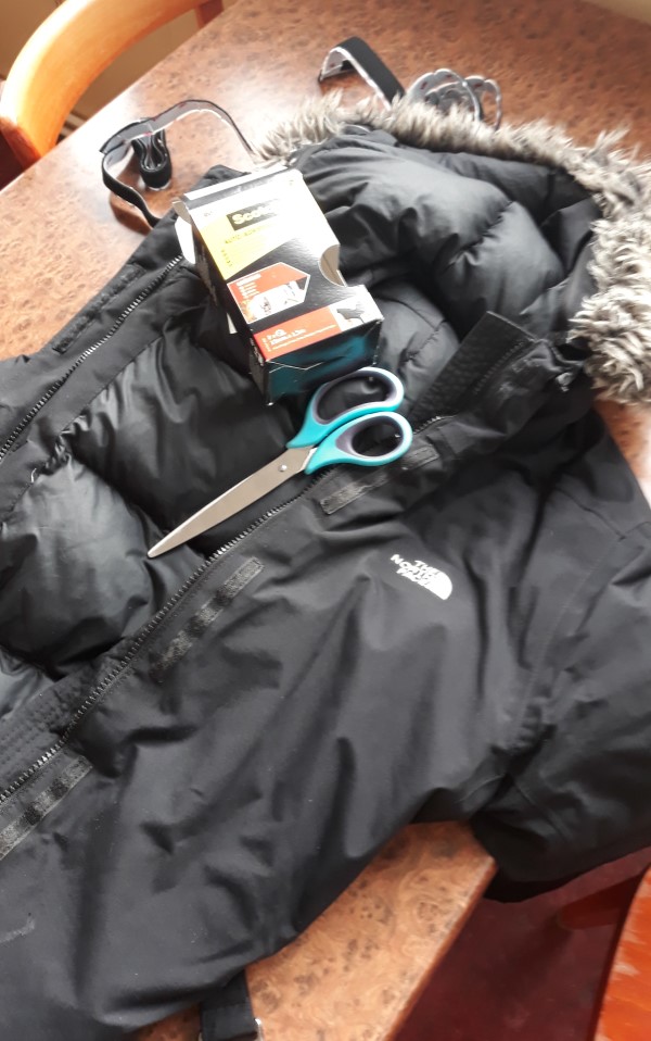 Ce sera également l'occasion d'une réparation de fortune d'un de nos blouson "North Face" dont la fermeture a lâché. On décide d'installer une large bande de velcro en remplacement et le tour est joué. Toujours emporter avec soi du scratch double face car ça répare beaucoup de choses. (petit passage en boutique tout de même par sécurité pour acheter un kit de couture, qui n'était pas encore dans notre check-list)