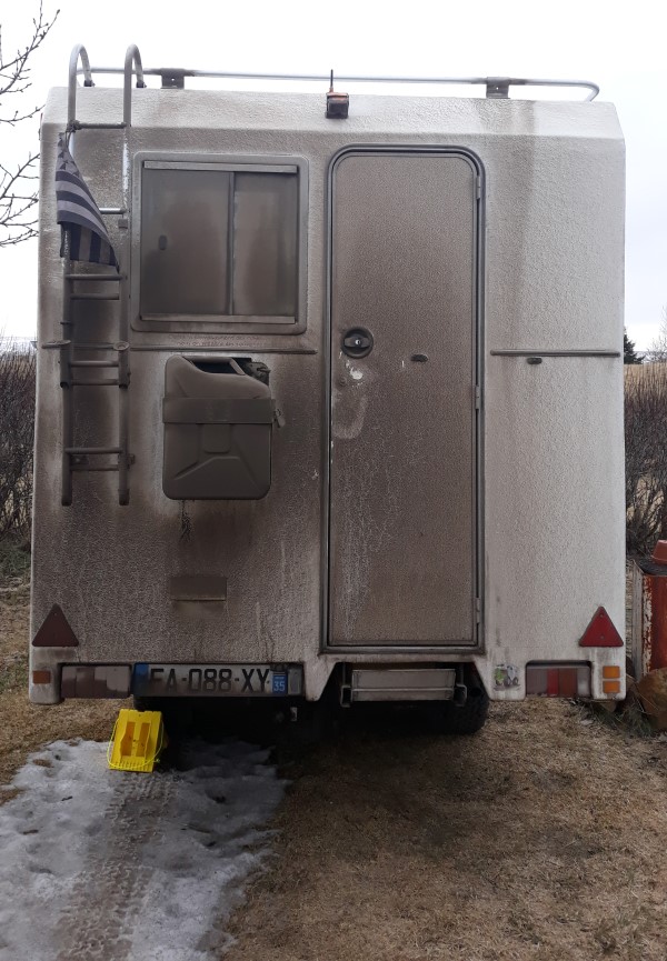 Nous jetons un œil dehors au levé du soleil, il vente, nous sombrons à nouveau dans les bras de Morphée jusqu'à 9h30. Au réveil nous partons nous installer dans la cuisine du camping pour au final y rester jusqu'à 13h30. La météo n'est pas bonne, un vent qui se renforce est annoncé. Nous ne prenons pas de risque et restons en compagnie d'un américain de Floride, chasseur d'aurores boréales, à discuter et à préparer un itinéraire pour le nord. Chacun s'affaire sur "road.is" et "en.vedur.is", le premier pour avoir les conditions de route, le second pour avoir la météo des prochains jours, mais on y trouve aussi les zones de vent, les températures, les précipitations, les séismes des 48 dernières heures et pour finir, très utile pour notre américain en quête de photo : la couverture nuageuse et la probabilité d'avoir des aurores !