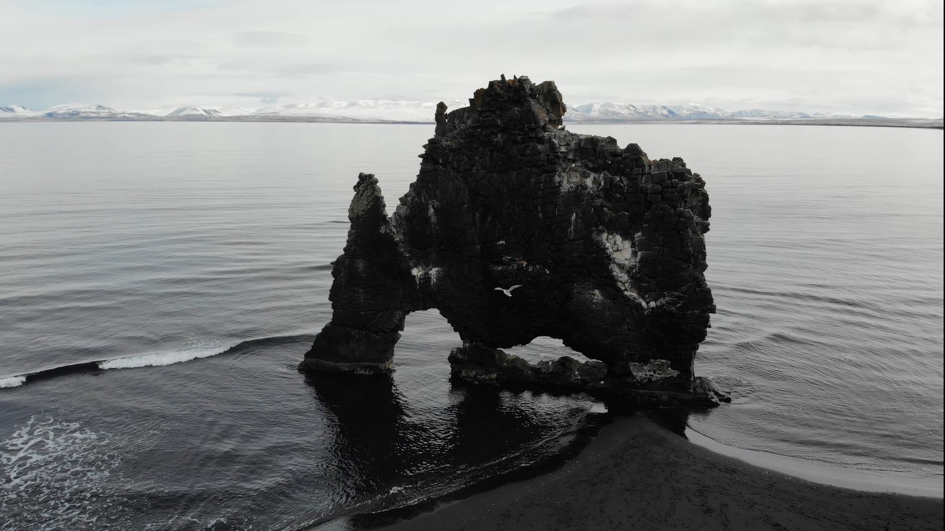 Au fil des virolos nous arrivons sur le fameux Troll figé « Hvitserkur » qui fut pétrifié par le soleil alors qu’il lançait des pierres sur le monastère de Pingeyrar. C’est un bloc de basalte de 15 mètres de hauteur. Encore une belle opportunité pour faire tourner le drone et ramener de belles images.