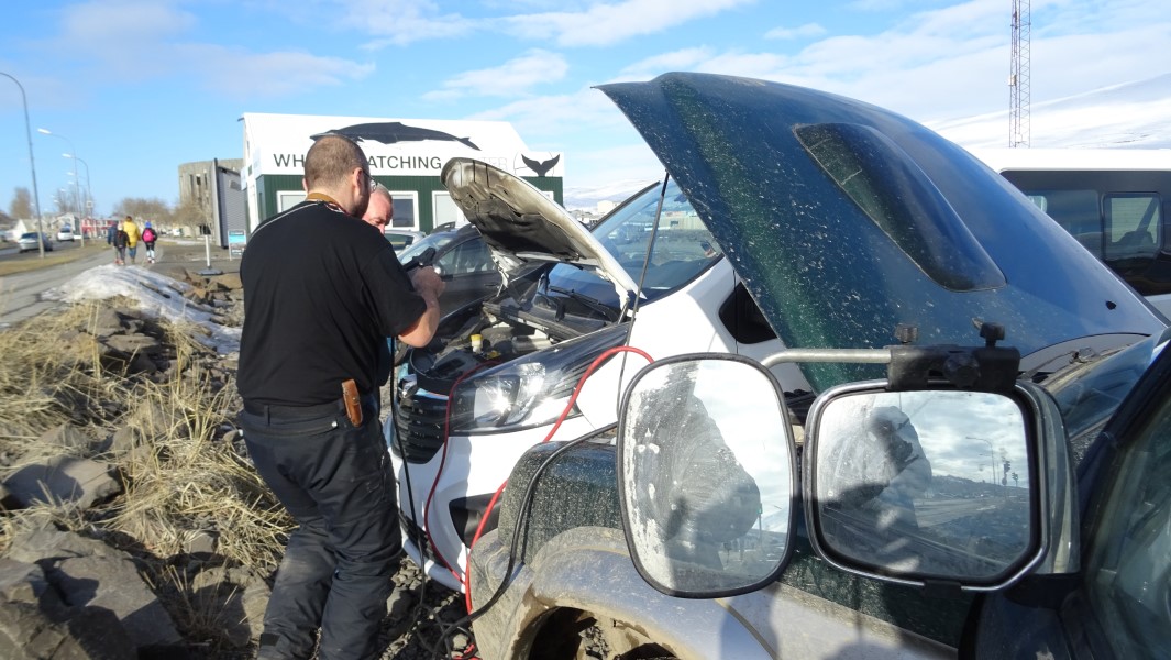 De retour sur le parking des anglais semblent en difficulté avec leur fourgon. Plus de batterie visiblement. Nous sortons les câbles et hop il pourront continuer leur périple aujourd’hui. Décidément c’est une journée rescue !