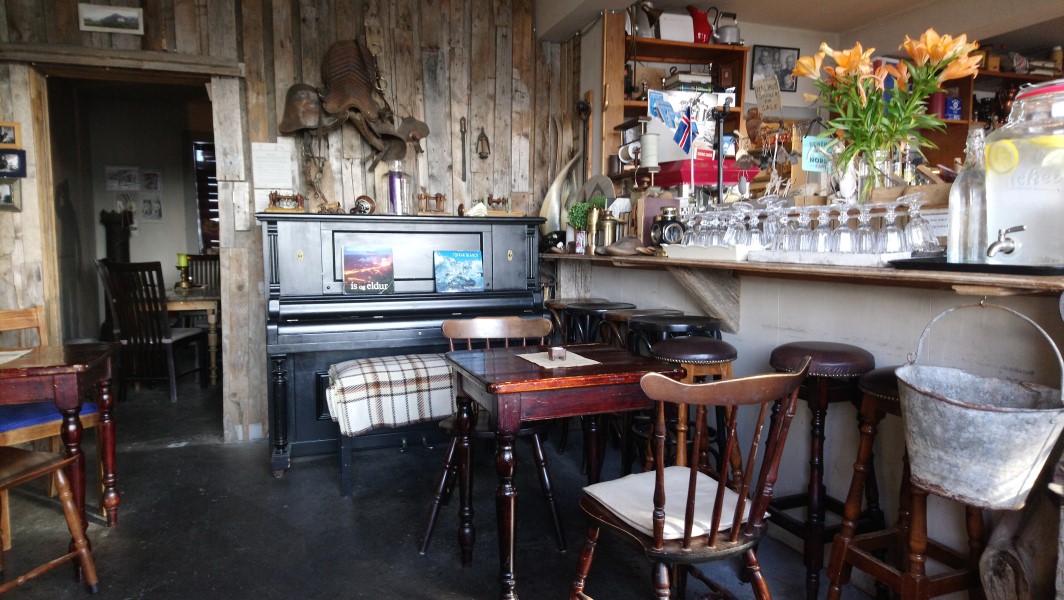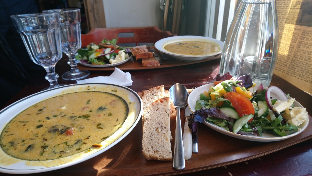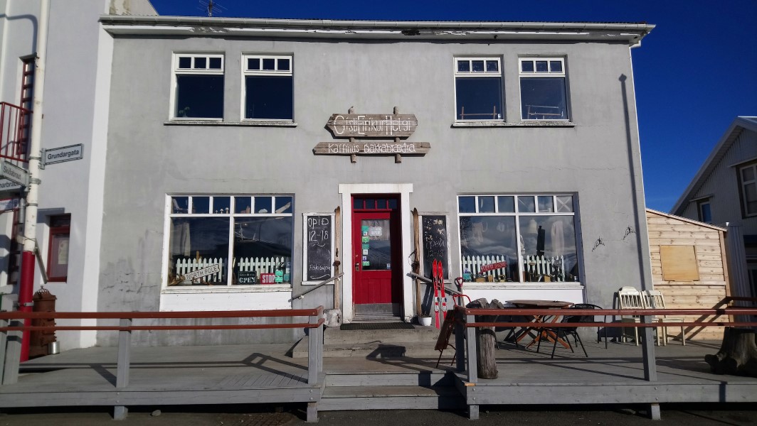 Cette aventure nous a donné faim. Nous nous arrêtons dans un super petit resto bar, « Bakkabraedurkaffi ». Soupe de poisson à volonté et de la volonté on en a. Belle petite pause dans cet endroit atypique.
