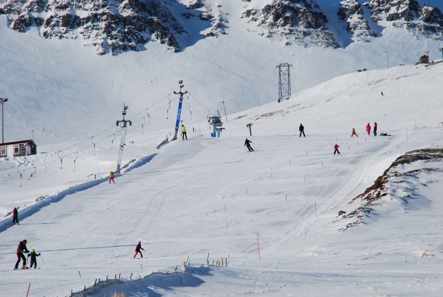 Nous reprenons la route et traversons de nombreux tunnels et petites stations de ski. Il y a encore beaucoup de neige. Nous décidons d’aller voir à quoi ressemble une station islandaise. Celle que nous voyons est de petite taille, le bas des pistes se situe à 200m d’altitude.