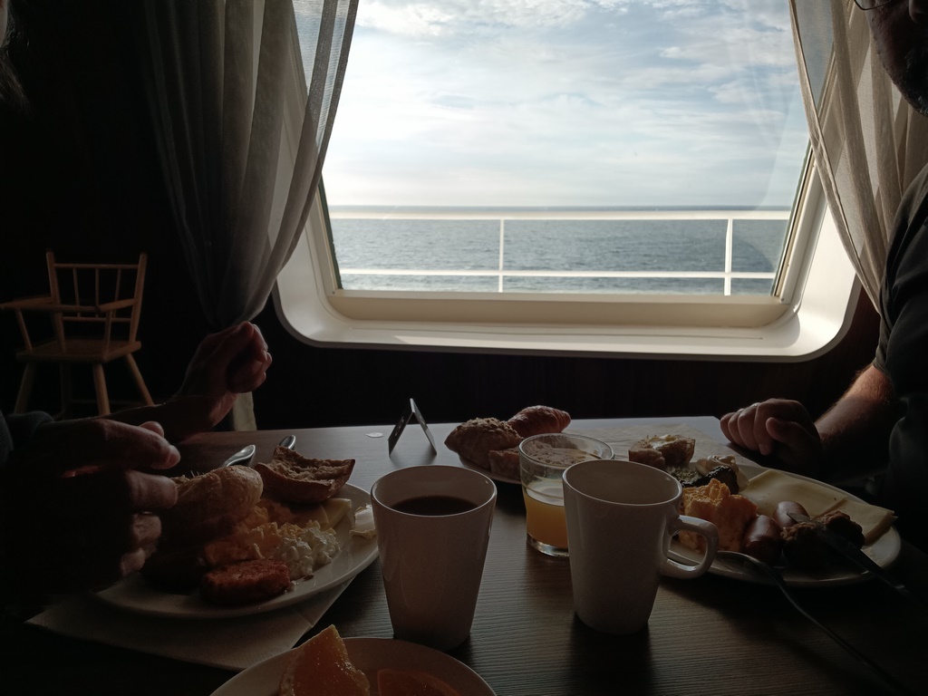 19 h repas du soir, on a du bol la table qui nous a été attribué pour la traversée de trouve juste face à la mer.