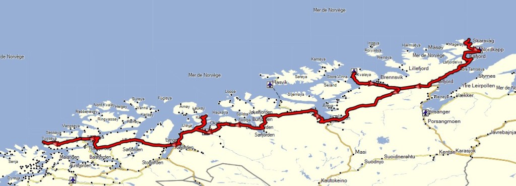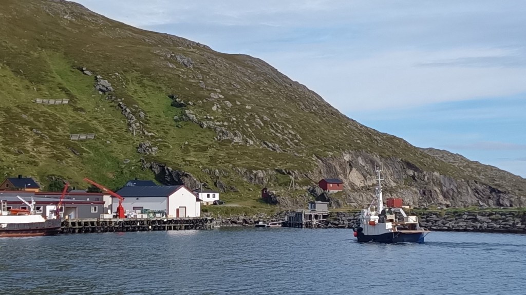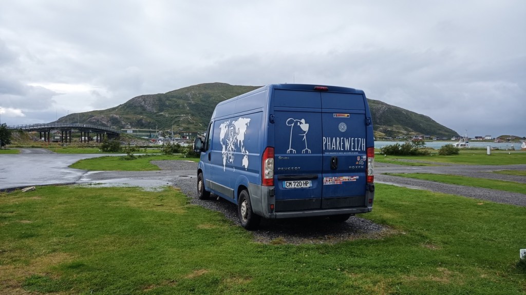 Une fois tout en haut, il faut bien redescendre… mais cette fois nous avons pas mal de temps devant nous donc nous allons pouvoir explorer tranquillement. L’île de Mageroya a encore quelques coins que nous ne connaissons pas, nous prenons donc la direction du petit port de Skarsvag, avant d’aller vers Honningsvag.