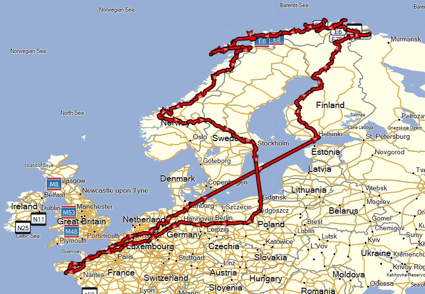 - consommation plus faible que nous pensions : 7,5 litres/100 km en moyenne, 7,2 sur la portion Finlande / Norvège