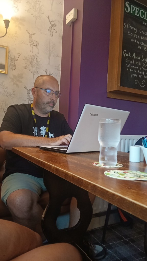 Il est 16H, le PC est rapidement de sortie pour profiter du wifi en sirotant une pinte de John Smith’s (pour Stéphane) et un thé (pour Karine). Le temps de rédiger cet article et il sera sans doute l’heure de commander à manger, ou une autre pinte…