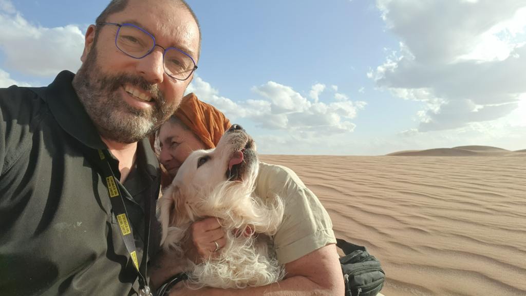 Nous avons la chance de pouvoir partager nos petites aventures avec Preik notre golden. Notre loulou est exceptionnel, il voyage avec nous depuis qu’il est tout petit. Je pense sincèrement qu’à partir du moment où il se trouve avec ses compagnons de tous les jours, il vit bien le changement de rythme. Nous veillons sur lui comme il veille sur nous.