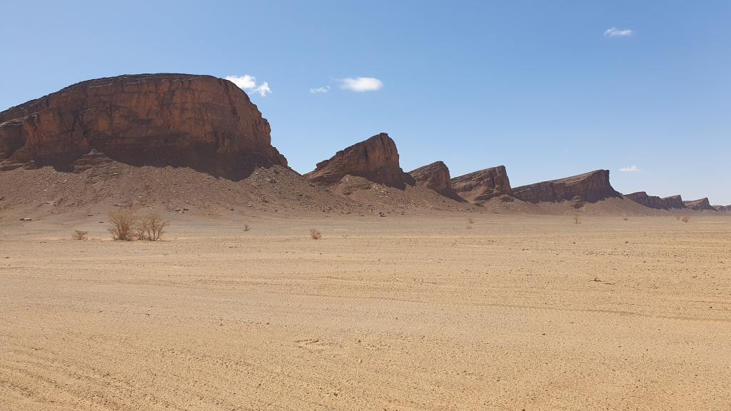 La zone de désert est au sud, avec une alternance de sable, cailloux, terre… On y trouve des petits villages et le bitume avance (d’après ceux qui ont connu ça avant…), mais en prenant les pistes situées entre la N12 et la frontière algérienne, on trouve de grandes étendues où on peut rouler et s’arrêter sans personne à l’horizon. Nous n’avons croisé que 2 à 3 véhicules par jour dans ces zones et c’est vraiment agréable d’évoluer avec notre Patrol sur ces pistes variées, avec des paysages qui changent au fil des reliefs qu’on dépasse ou contourne. C’était notre première donc nous avons opté pour les pistes trouvées dans wikiloc en niveau facile ou modéré. Il nous reste beaucoup à découvrir et le simple fait de changer de vallée pour un même itinéraire peut complètement modifier l’expérience.