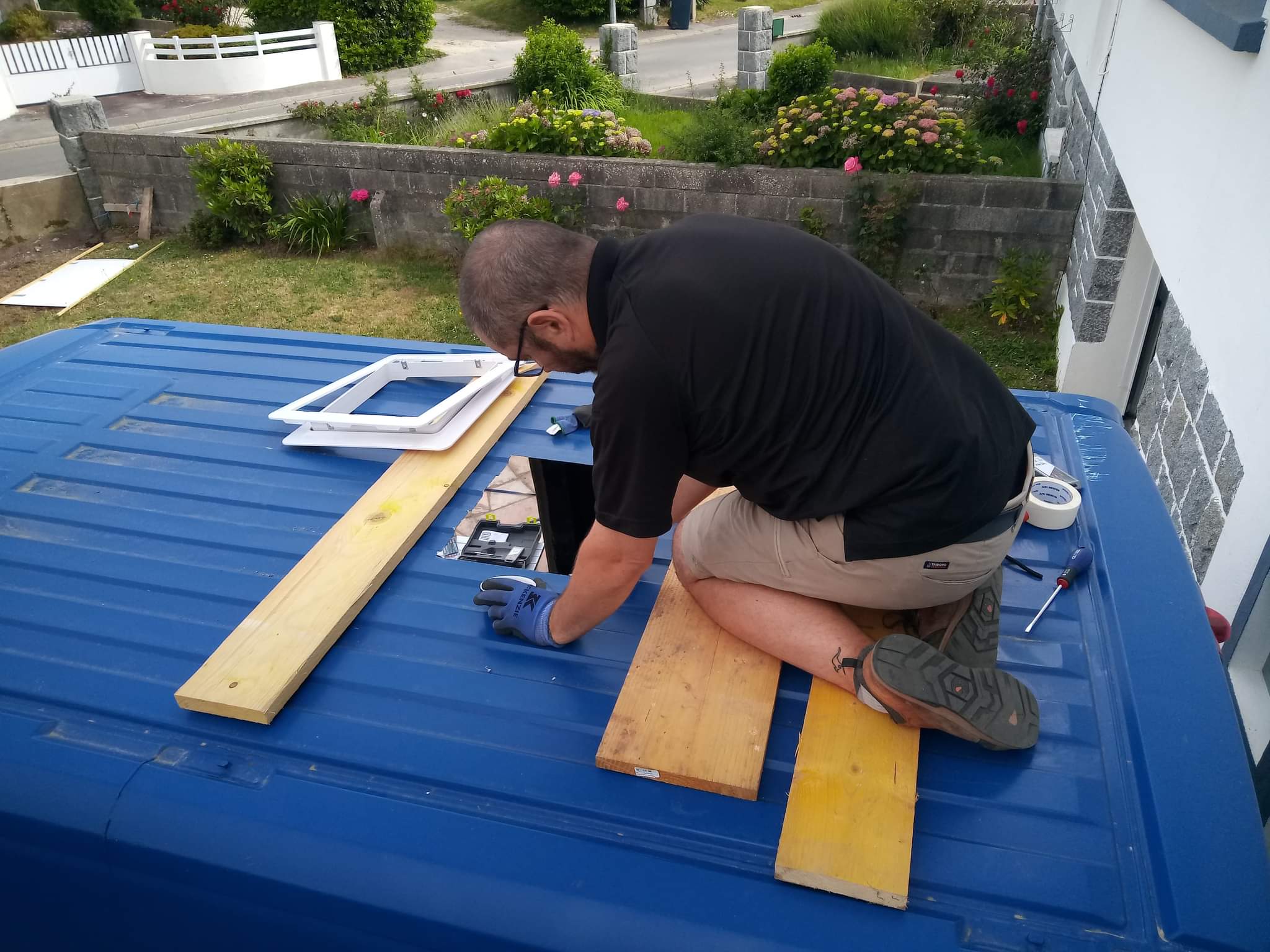 - On apprécie beaucoup notre lanterneau / ventilateur (MAXXAIR Maxxfan Deluxe) qui nous permet de faire entrer ou sortir de l’air, à différentes vitesses et qui peut rester ouvert quand on roule et quand il pleut…
