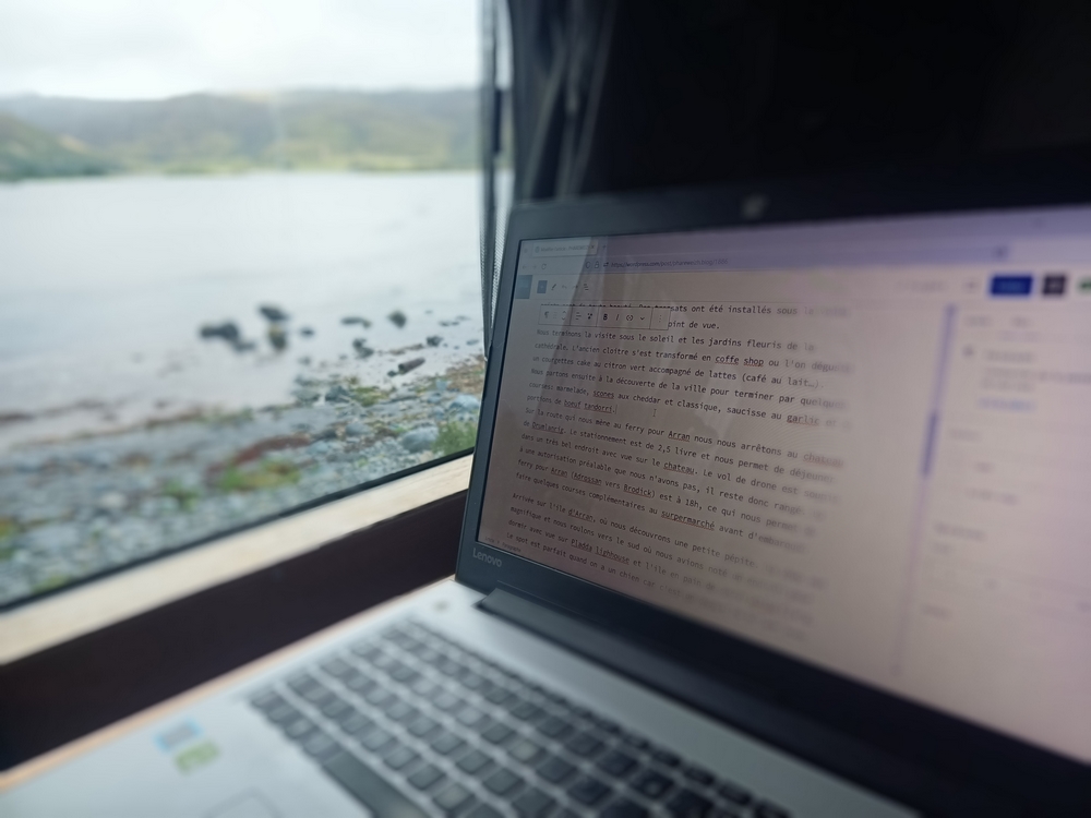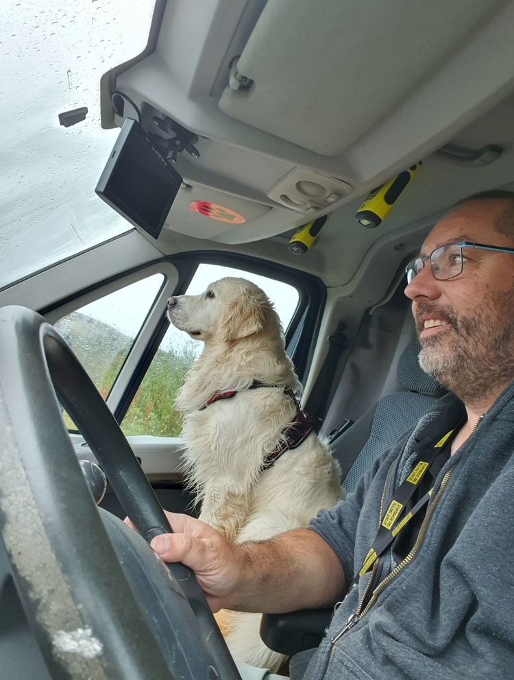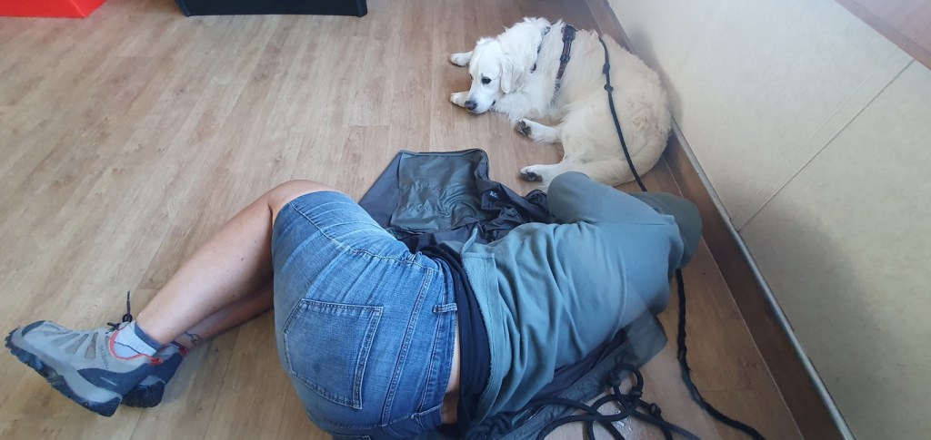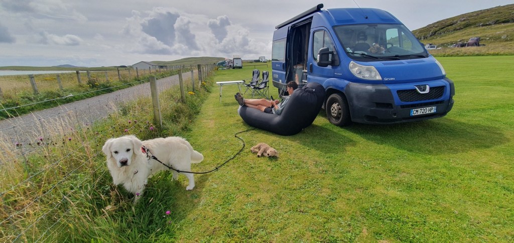 Nous avons la chance de pouvoir partager nos petites aventures avec Preik notre golden. Notre loulou est exceptionnel, il voyage avec nous depuis qu’il est tout petit. Je pense sincèrement qu’à partir du moment où il se trouve avec ses compagnons de tous les jours, il vit bien le changement de rythme. Nous veillons sur lui comme il veille sur nous.