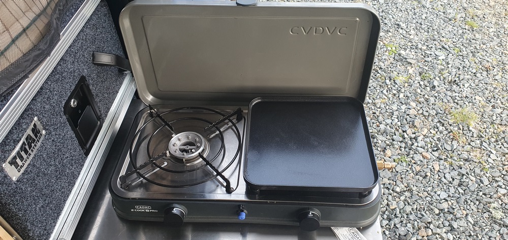 L’aménagement a très bien fait le travail… Pas de vibrations, une bonne résistance aux terrains accidentés, tout à portée de main pour monter le campement, pour préparer à manger, … Largement assez de place pour tout ce que nous voulions emporter, même si dans le futur on va réfléchir à une tente de toit (avec gestion de notre boule de poil) qui va libérer de la place dans le coffre et simplifier l’installation du bivouac.