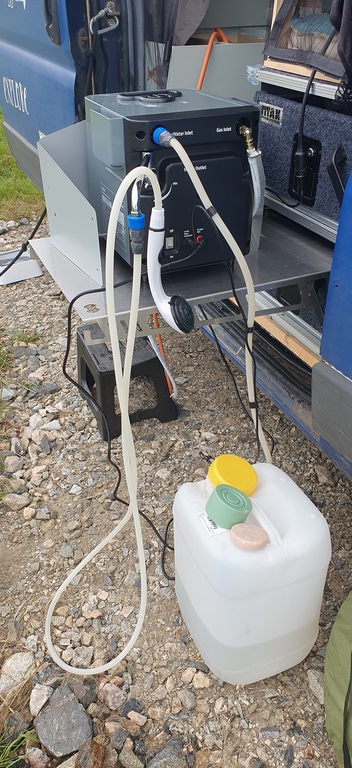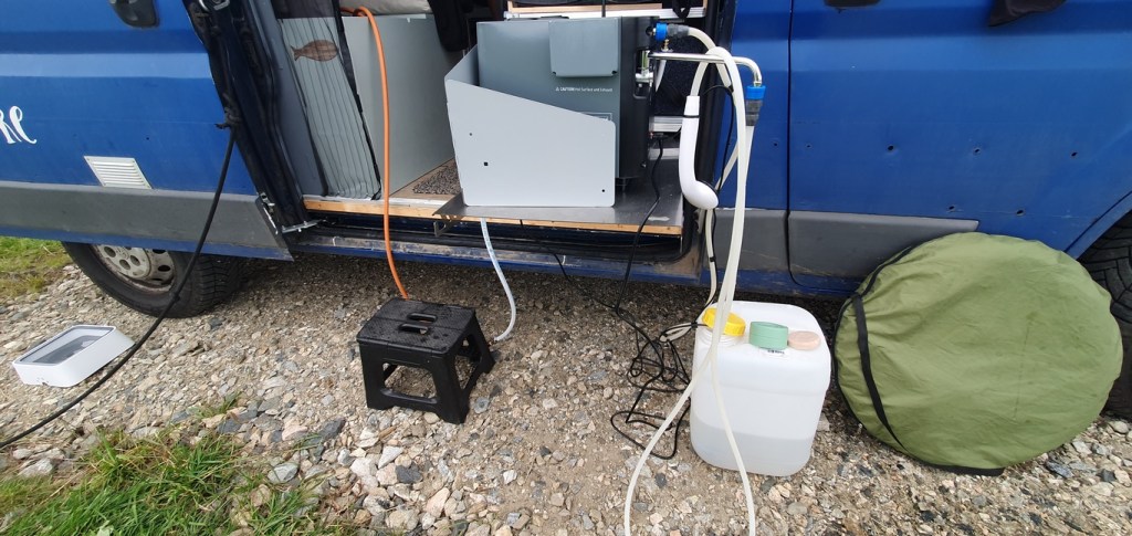 Nous disposons de 2 jerrycans de 20 litres qui nous servent de réserve. Nous avons par ailleurs un jerrycan Lifesaver de 18 litres pour filtrer et produire de l’eau potable ainsi que 2 gourdes Oko, toujours pour filtrer mais sur une plus petite quantité (1 litre). Ces quantités, rechargées dans les campings principalement (mais on trouve facilement de l’eau en station service également), ont été largement suffisantes.
