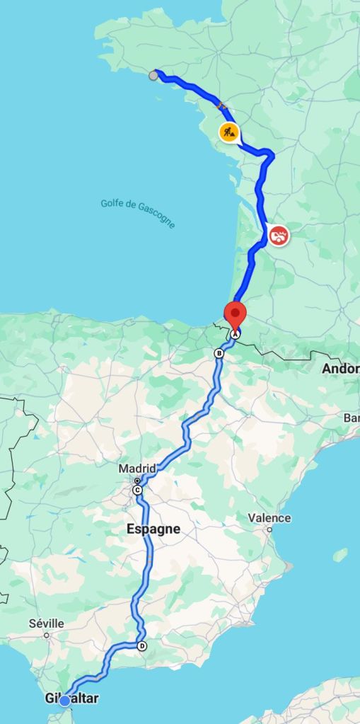 Voilà déjà un aperçu de l’itinéraire… Descente et remontée qui seront modifiées quand on y retournera (voir en bas les projets), comme prévu descente du Maroc par l’est et grande boucle au sud (plus de piste qu’on ne pensait, on y est tellement bien) et remontée par l’est qui n’était pas prévue mais on a adapté à cause de la météo qui amenait des pluies diluviennes à l’ouest, et on n’a pas été déçus en approchant de Tanger…