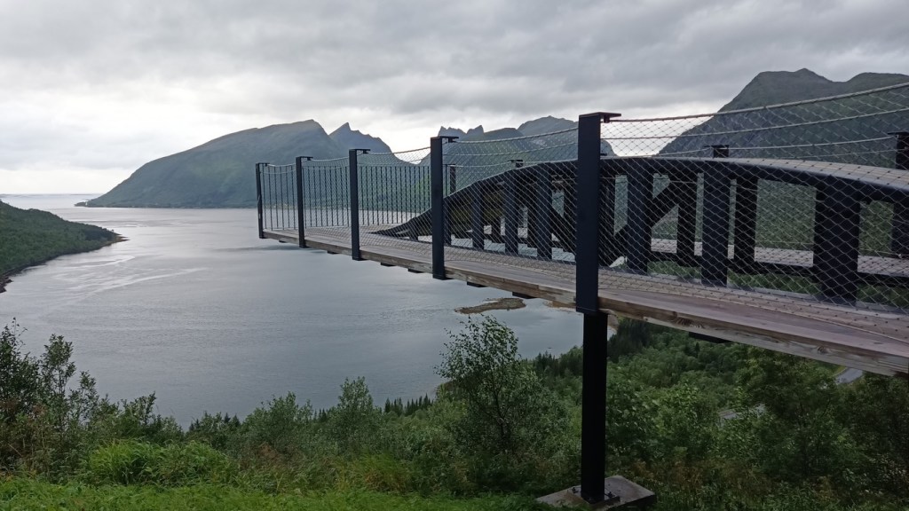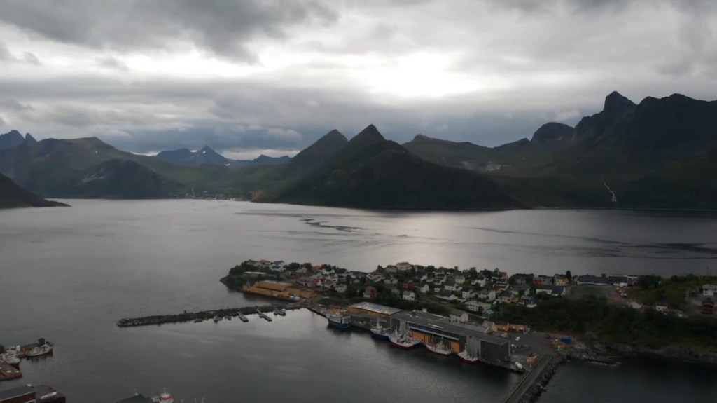 Arrivée sur l’ile de Senja, on découvre un joyau dans un écrin de verdure. De la montagne verte et escarpée, on aurait pu y jouer les scènes du film le seigneur des anneaux.