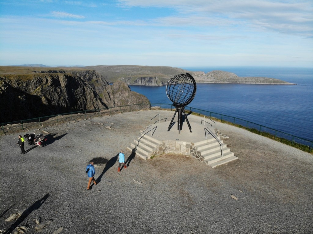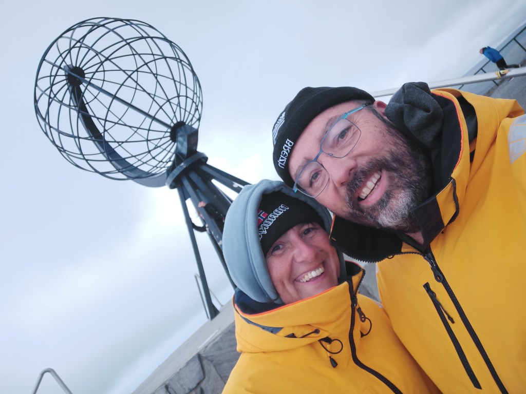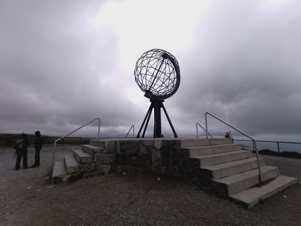 L’arrivée au Cap Nord : un grand parking plein de camping cars et avec un centre où il faut payer pour avoir le droit d’entrer pour y dépenser des sous… Mais surtout le Cap Nord, bout du monde, dernière terre avant le pôle nord ! (Ok je m’emporte, il y a les Svalbards à mi chemin…)