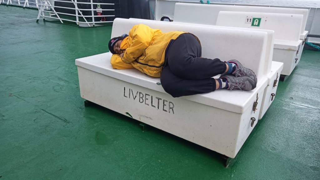 Quelques ferries, toujour étonnants avec leur gueulle de requin qui va nous avaler. Nous sommes inscrits sur FerryPay, de cette façon quand nous entrons dans un ferry la plaque est reconnue et le débit est automatique, sans avoir de paiement à faire à chaque fois. Il y a souvent une cafétéria également à bord, c’est l’occasion d’un café ou d’un petit gâteau. Une différence culturelle intéressante, ici tout fonctionne sur la confiance : on peut trouver une cafet sans employé, où vous vous servez vous même, café et nourriture… ensuite vous entrez ce que vous avez pris sur la caisse enregistreuse et vous payez avec la carte en sans contact… facile et pratique !
