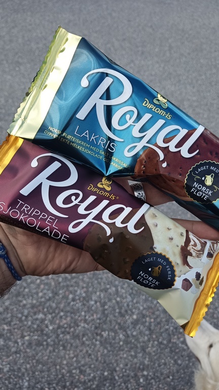 Nous faisons une pause un peu plus loin pour nous remettre… C’est l’été après tout, une petite glace sera la bienvenue. On ne peut que vous conseiller d’utiliser la fonction traduction de google (ou autre pour les fans d’apple…) avant de passer à la caisse et pas après comme je le fais… Une glace trois chocolats, nickel… l’autre, « lakris », ça parle de sel, ça doit être du caramel… hé bien pas du tout… la glace au réglisse avec une pointe de sel, ça existe ! Et à part si on est fan de réglisse, c’est pas top !