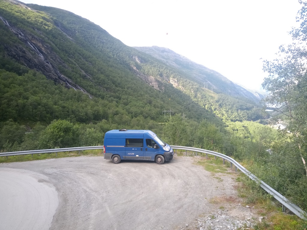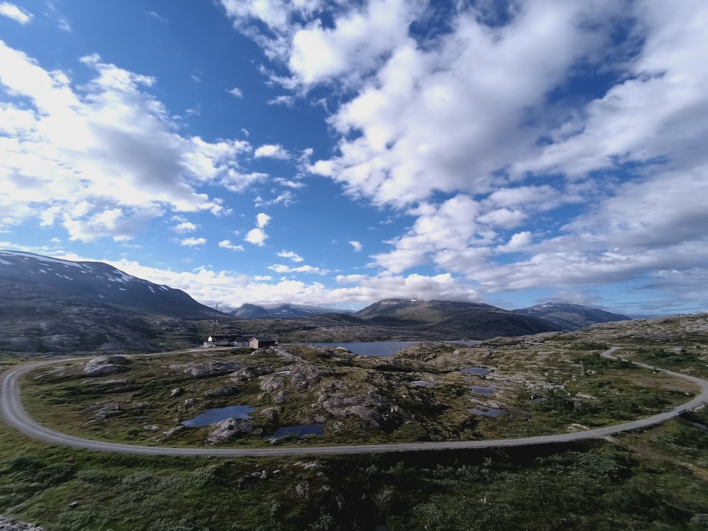 Rien de vraiment acté pour la suite, nous décidons de prendre la direction de la route 55, la Sognefjell Road, avec un objectif spécifique : la station de ski d’été « Galdhopiggen sommerskisenter ». Nous voulons prendre un peu d’altitude pour les vues tout d’abord, puis pour voir comment se comporte notre fourgon à la fois pour monter et pour dormir en situation de froid.