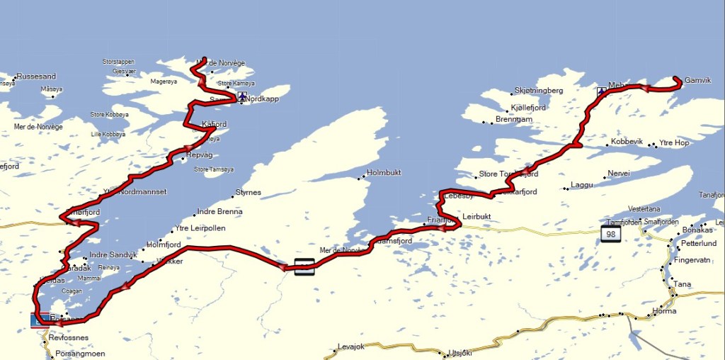 Départ pour le phare de Slettnes. La route est magnifique. Longue pose face a un fjord, balade avec Preik qui se fait une beauté en se roulant dans la crotte de renne et prises de vues drone pour Stef après vérification du droit de vol à cet endroit (une appli donne les zones et permet de voir où sont les aéroports, on ne doit pas voler à moins de 5 km).
