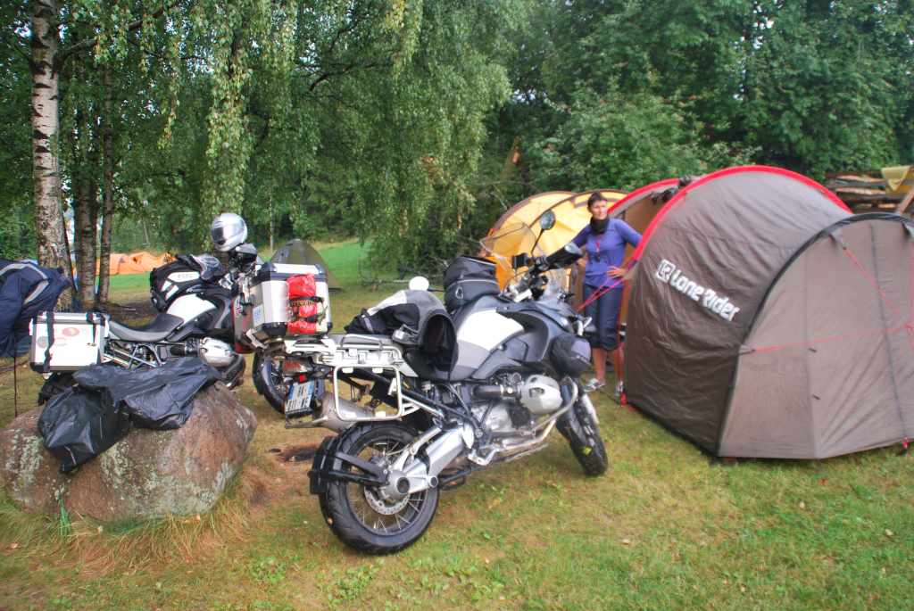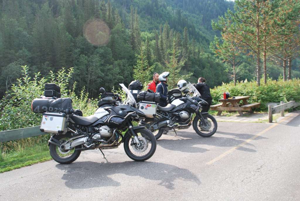 La Norvège à moto, c’est aussi le froid, la pluie qui duuuuuure parfois longtemps. La Norvège à moto et en tente, c’est tout ça le jour mais aussi la nuit ! Il faut parfois résister à l’envie d’aller au chaud et au sec dans un petit établissement local, mais quand parfois on craque et qu’on demande le prix… on retourne à la tente se faire chauffer les boulettes de rennes sur le réchaud… pour au matin quand les éléments sont calmés sortir de ce « keskejefouslà » et passer à un émerveillement face à l’immensité et la beauté des paysages.