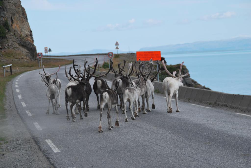 Conseil aux voyageurs : n’hésitez pas à aller vers le nord, vraiment tout au nord… le cap nord ok mais pas que, parce que les rennes, en été, sont là haut, sur les péninsules… et franchement qu’ils soient seuls à galoper à 2m de votre moto ou en troupeau de plusieurs centaines à traverser devant vous, on ne s’en lasse pas !